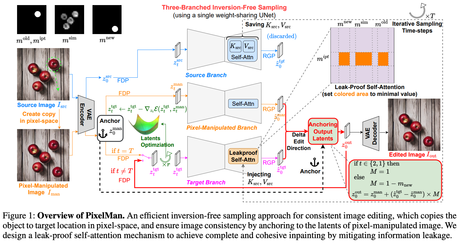 - 편집 생성 시 self-attention을 상호 참조/고정/혼합하여, 특정 영역/객체의 정합성을 유지한다.